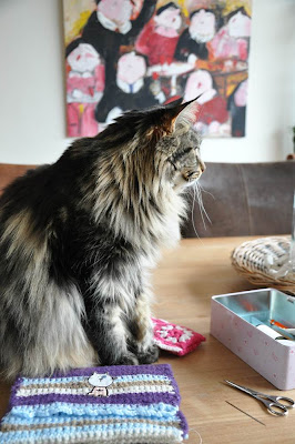 BeantwoordenVerwijderenHahahahah heel herkenbaar ;) alleen is onze Mara niet zo groot dus zie dat direct. Ook bij het haken van mijn tafelkleed voor buiten, springt ze er standaard op zodat ik niet verder kan. Leuke en zeer praktische hoes :D